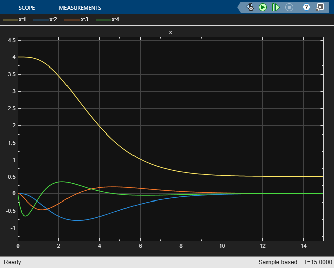 K = place(A,B,p);Simulate the model with the baseline controller.