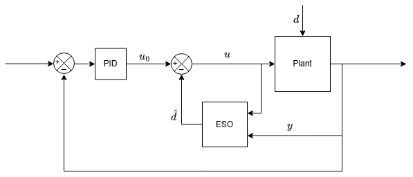 Architecture — This figure shows a typical way of implementing ESO to compensate for unmodeled plant dynamics or uncertainties.