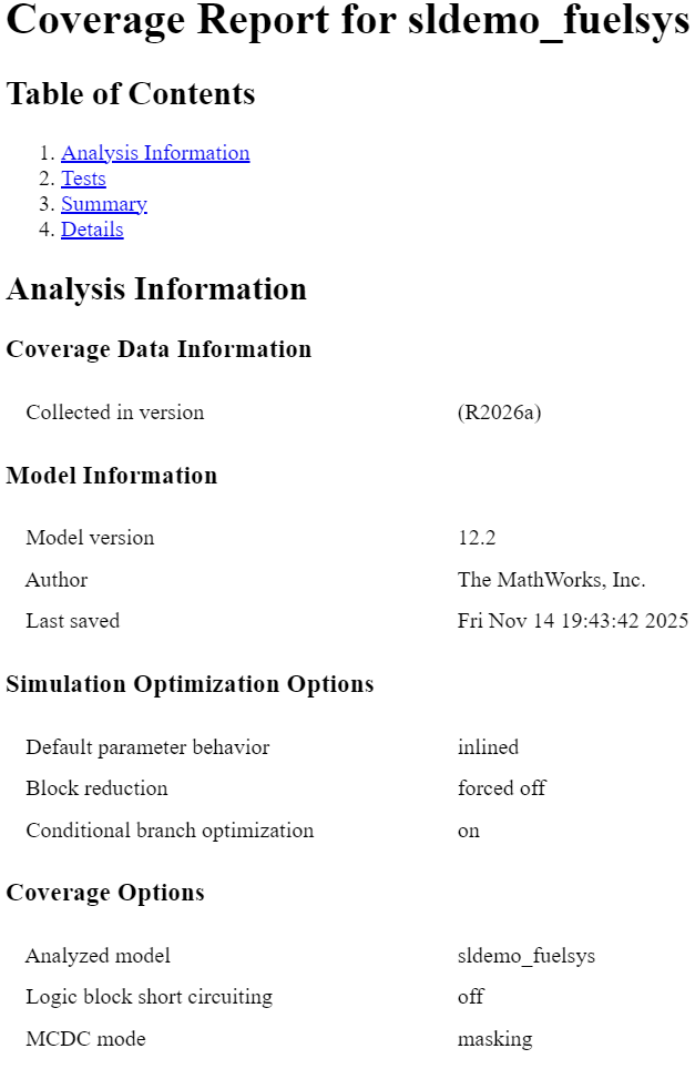 For more information about analyzing coverage, see Generate Coverage Results for Models.