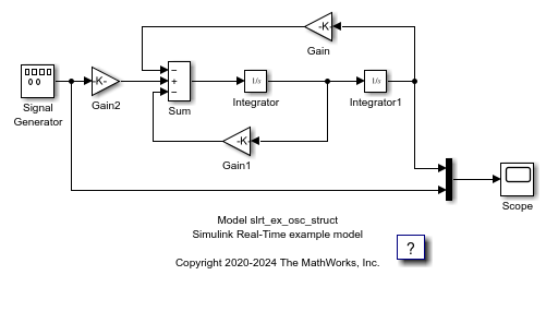 In this example, the initial model slrt_ex_osc has four parameters that determine the shape of the output waveform.
