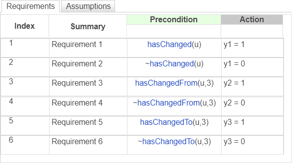 Requirements Table blocks can detect changes in the values of data between time steps. You can use change detection operators to determine when data changes to or from a value.