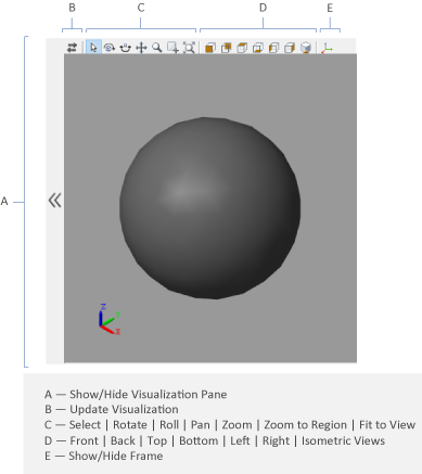 The Spherical Solid block is a spherical shape with geometry center coincident with the reference frame origin.