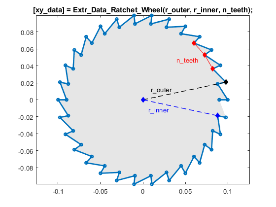 This plot shows the extrusion data for the wheel. This was created in MATLAB and was used to generate the data for the contact geometry along the edges of the wheel.