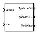The PWM Timing and Waveform Generator (Five-phase, Two-level) block controls the switching behavior for a five-phase, two-level power converter. The block calculates on-gating and off-gating times and modulation waves based on these block inputs: