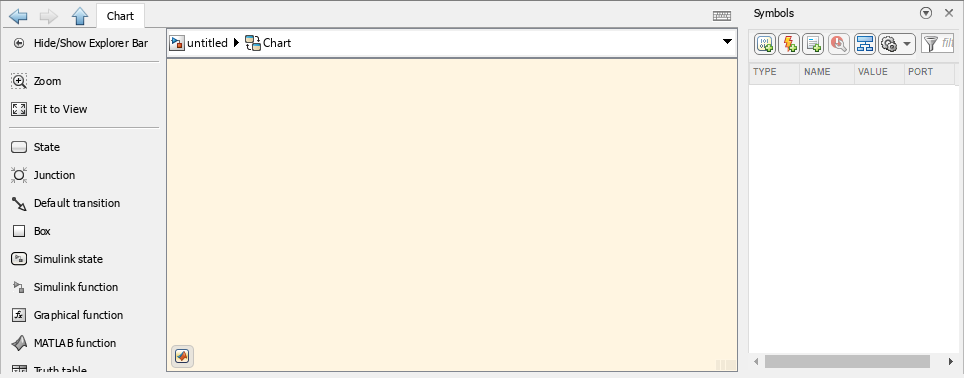 Cree un nuevo modelo de Simulink® que contenga un bloque Chart vacío.