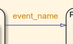 To receive the event broadcast in a transition, enter the name of the event in the transition label. The event does not require brackets or braces. The transition must be a direct or indirect child of the receiving state.