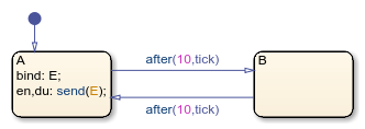 El operador lógico temporal after cambia el estado activo cada diez unidades de tiempo, de modo que el gráfico Callee se activa y desactiva repetidamente.