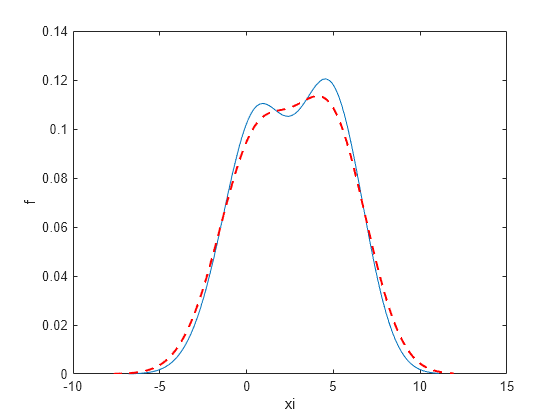 [f,xi] = ksdensity(x,'Bandwidth',1.8); plot(xi,f,'--r','LineWidth',1.5)