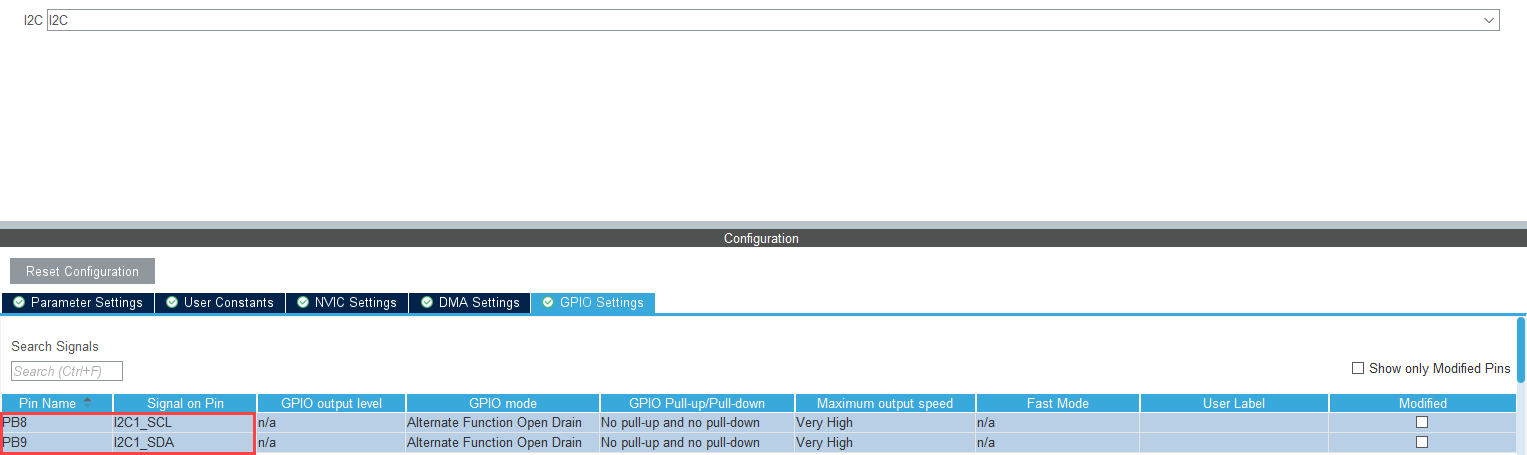 4. Perform the following configurations to enable and configure I2C1 to enable the communication between host and target as shown in STM32 CubeMX.