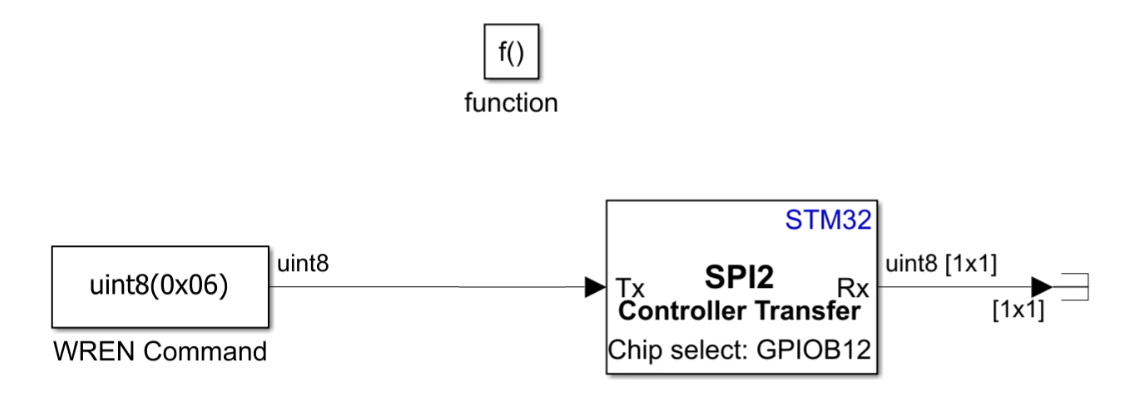 1. Use SPI Transmit block to send Write Enable command (0x06).