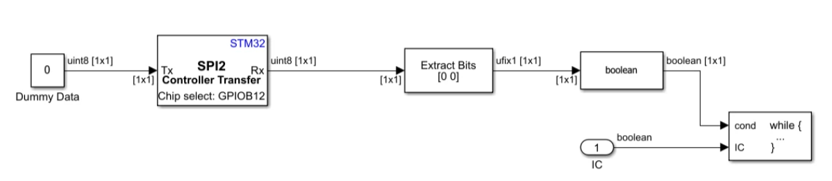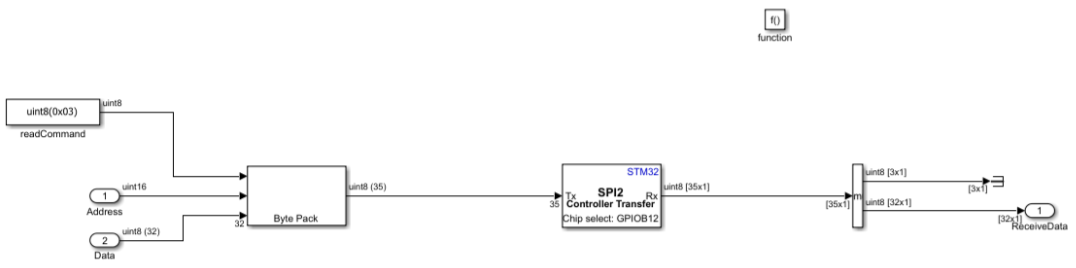 2. Follow immediately with SPI Receive block configured for 1-byte dummy receive.