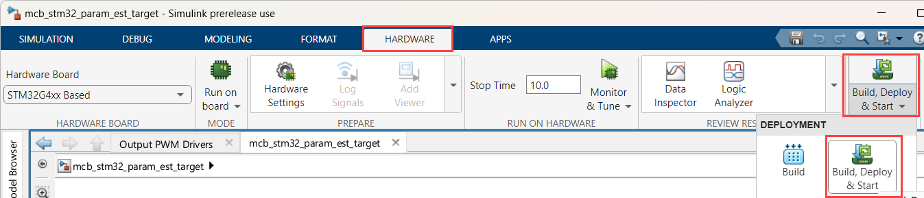 1. Open the host model Mcb_stm32_param_est_host.slx.