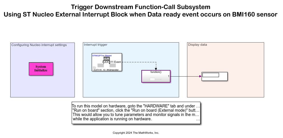 Trigger Downstream Function-Call Subsystem Using STMicroelectronics Nucleo External Interrupt Block with Data Ready Event on BMI160 Sensor