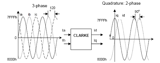 | C2000 Clarke Transformation | Clarke Transform (Motor Control Blockset) |
