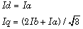 Convert balanced three-phase quantities to balanced two-phase quadrature quantities