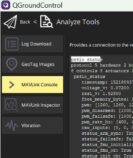 1. In the QGC, go to Analyze Tools and navigate to MAVLink Console.