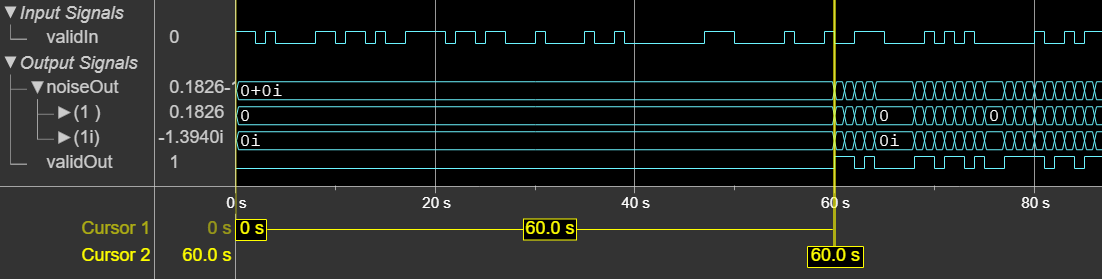 The WGN Generator block generates white Gaussian noise (WGN) samples. The block accepts a control to generate WGN samples, and outputs WGN samples and a control signal to indicate a valid noise output. The WGN samples are a sequence of random samples that have a Gaussian distribution with zero mean and specified noise variance. These samples are called white noise because they have the same amount of power at all frequencies. In simple terms, each sample is completely random and does not depend on any other sample.