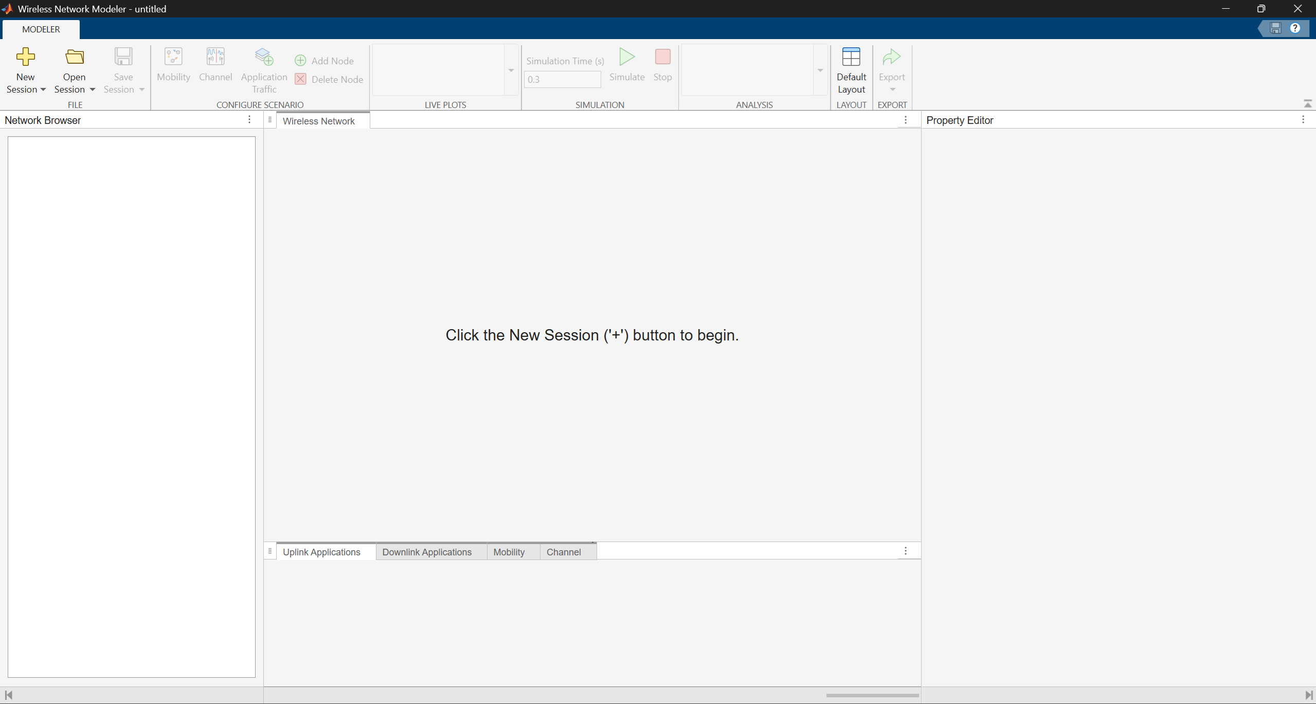 • MATLAB Command Prompt: Enter wirelessNetworkModeler