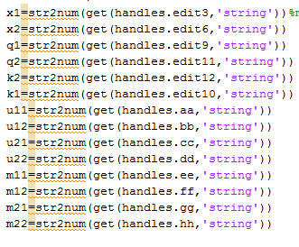 One thing you're doing wrong however is passing the result of get() into str2num(). If the field is empty that will most likely cause an ugly error. It's better to check first and present the user with "friendly" instructions like in my code.