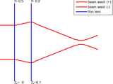 | 1.1.0.0 | Continue the beam propagation up to the beam waist if it happens to be much after the last lens position (thanks Graham). Added the option to print waist positions and sizes on the figure. |