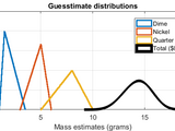 Example: Based purely on guesstimates that include a best guess and intuitive upper/lower limits, how much do a dime, nickel, and quarter weigh together?